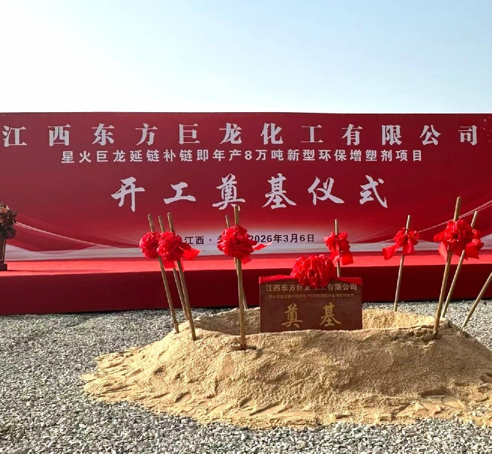 2026年3月6日,江西东方巨龙化工有限公司星火巨龙延链补链即年产8万吨新型环保增塑剂项目奠基仪式在九江市永修县星火工业园隆重举行。仪式现场氛围庄重有序、彩旗飘扬,受邀出席的星火集团等领导特邀嘉宾、承建施工单位代表、公司领导班子成员及全体员工齐聚一堂,共同见证这一承载企业战略发展的重要时刻。仪式伊始,在热烈